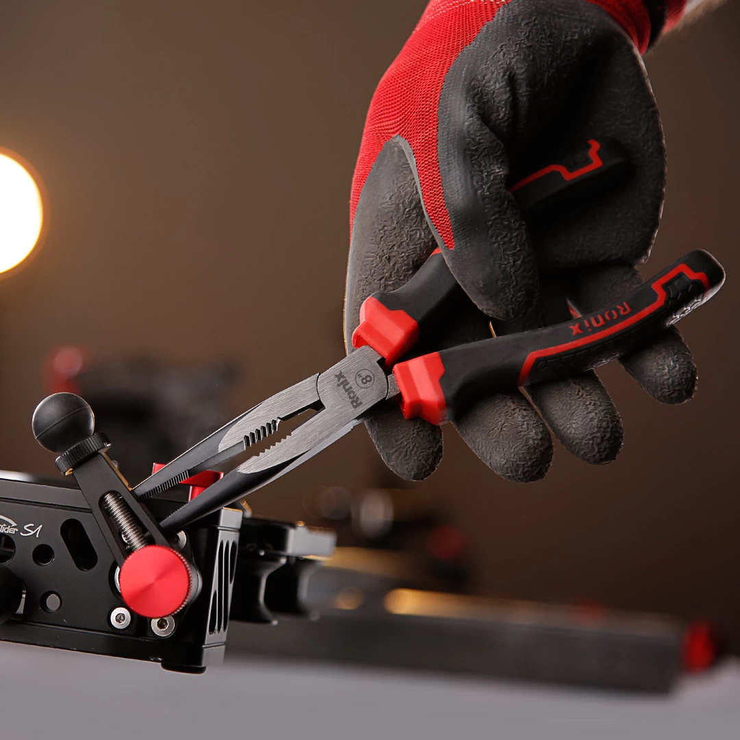 حتما برای شما پیش آمده که با محیط‌های کوچک و شلوغ یا حفره‌هایی طرف بودید که دسترسی به سیم‌ها با دست یا انبردست هم ممکن نبوده است. در این مواقع باید از ابزاری به نام دم باریک استفاده کنید که دارای نوک بلند و باریک است. دم باریک مکسی RH-1366 رونیکس، از جنس کربن استیل سخت‌کاری‌شده بوده و دارای دسته‌های ارگونومیک برای جلوگیری از خستگی دست‌ها است.